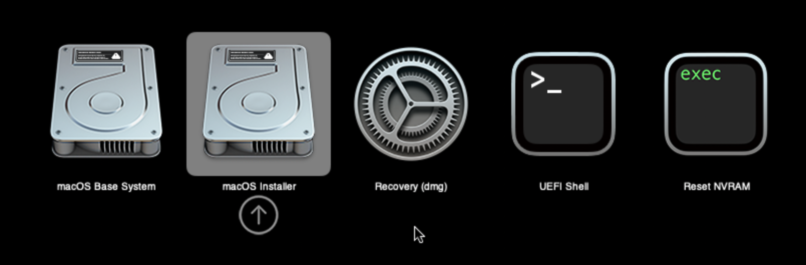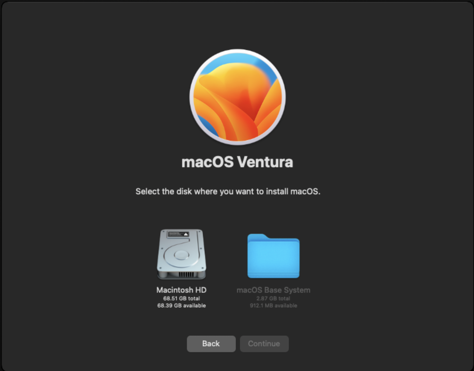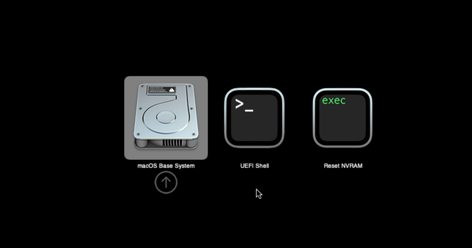 Choose the 'macOS Base System' option using arrow-keys to select and enter to confirm.