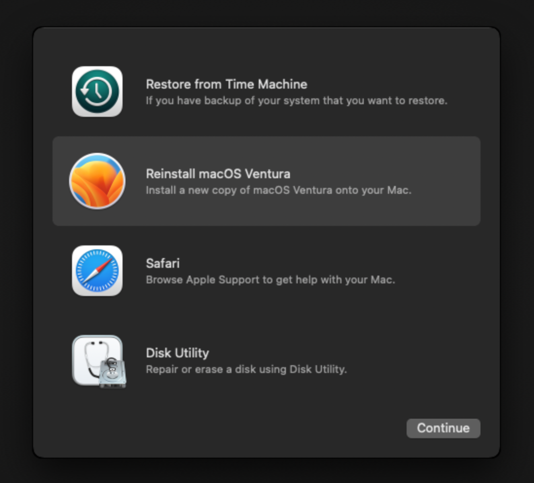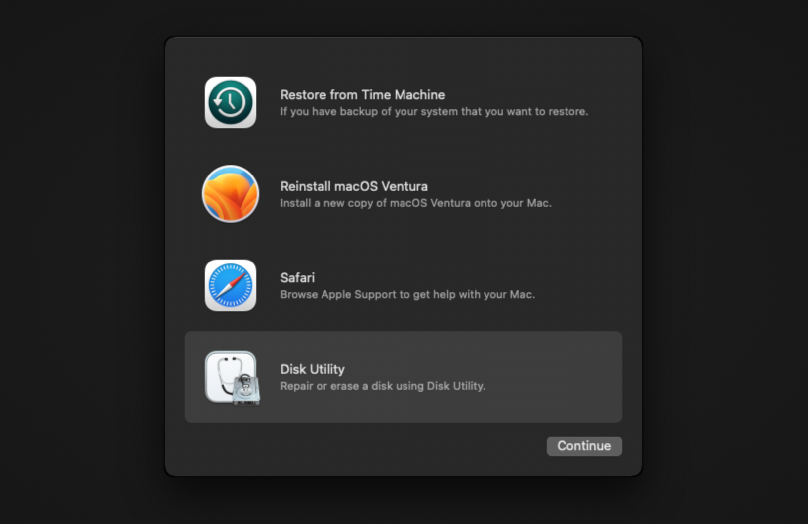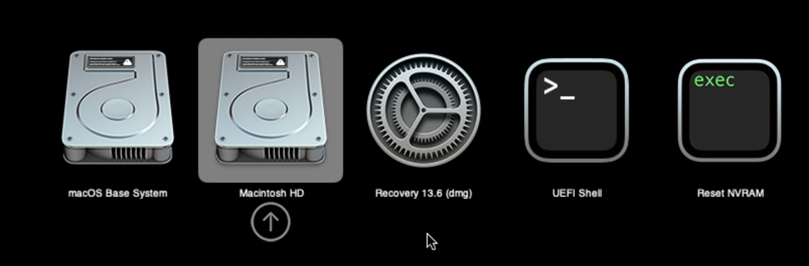 Choose the 'macOS Base System' option using arrow-keys to select and enter to confirm.