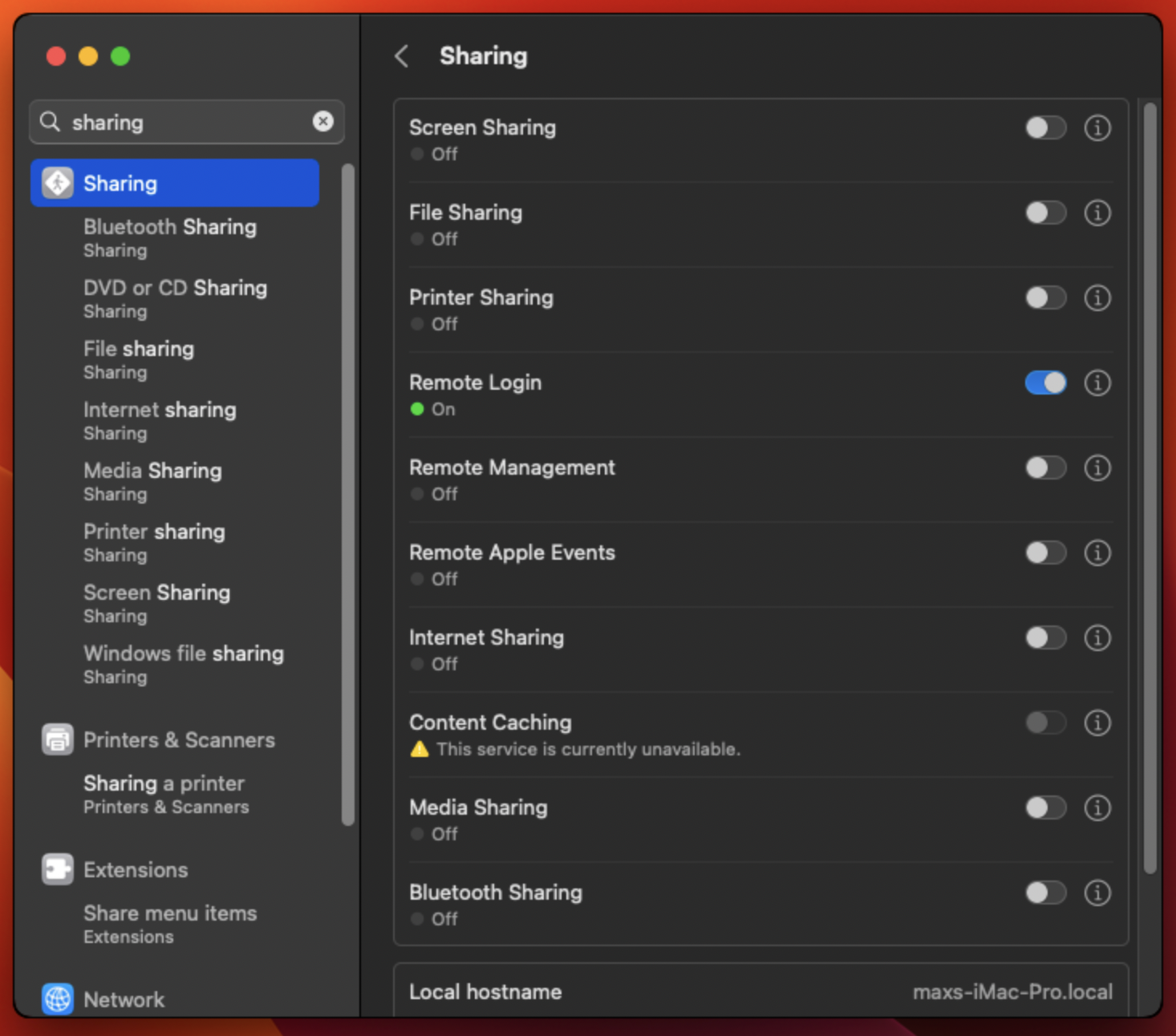 Enabling remote access to your machine, especially on non-private networks is a security risk. Securing MacOS is beyond the scope of this guide, but as a starting point users are advised to disable password authentication for remote login as explained in the article Secure Your macOS Remote SSH Access by Disabling Password Login.