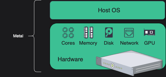 "Bare Metal" means that your host OS is running directly on a piece of hardware without any virtualisation. This reduces the complexity of deployment at the cost of increased time and effort for re-provisioning the host.